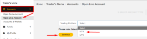 منوی معامله‌گر → حساب‌ها → افتتاح حساب زنده