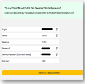 پس از ایجاد موفقیت‌آمیز حساب آزمایشی شما، اطلاعات کاربری پلتفرم شما روی صفحه نمایش داده می‌شود، از جمله: