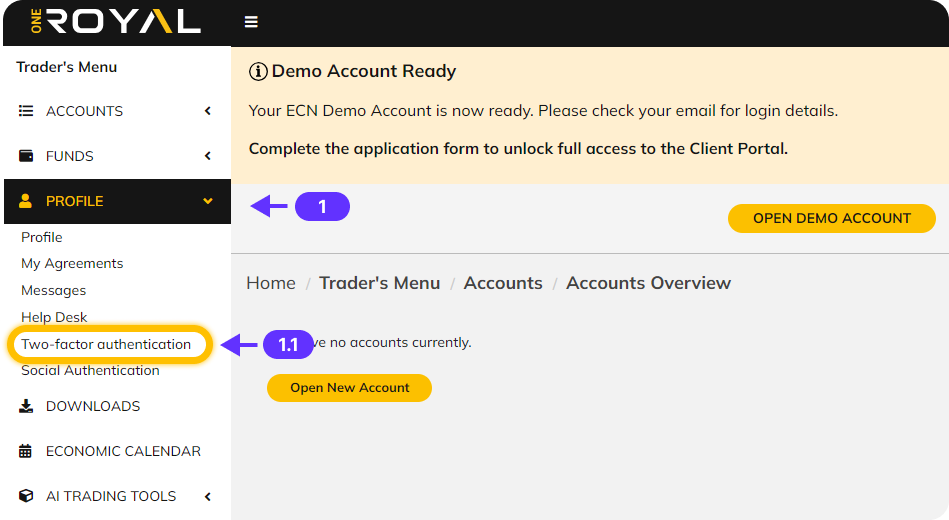 مرحله 1: وارد حساب کاربری OneRoyal خود شوید